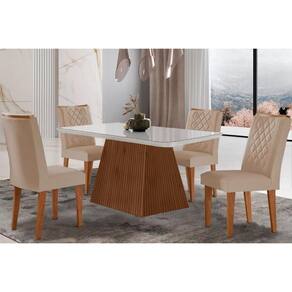 Abaixo segue os produtos do KIT: Sala de Jantar Completa Luna c/ Tampo Madeirado c/ Vidro Canto Curvo 120x80cm e 4 cadeiras Jade Imbuia/Off White - Suede Creme - Rufato