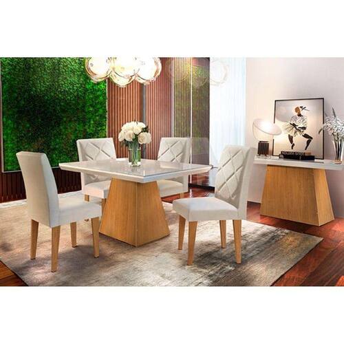 Conjunto: Mesa Sala Jantar Luna Tampo Madeirado 120cm + 4 Cadeiras Berlim Imbuia/Creme - Rufato Abaixo segue os produtos do KIT: Conjunto: Mesa Sala Jantar Luna Tampo Madeirado 120cm + 4 Cadeiras Berlim Imbuia/Creme - Rufato