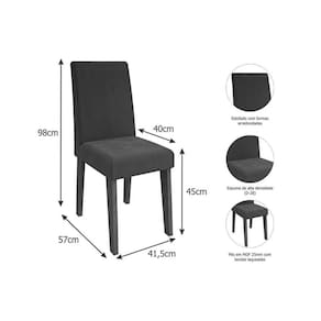 Dimensões(Cm): Comprimento(Profundidade): 57cm x Largura: 41,5cm x Altura: 98cm Material de Estrutura - Estrutura em MDF Estilo do Móvel - Tradicional Tipo de Pintura - UV Tipo de Acabamento da Pintura - Pintura Alto Brilho ou Fosca Materiais do Estofamento - Estofamento em Espuma Forração do Revestimento - Linho Tipo do Assento - Estofado Tipo de Encosto - Estofado Tipo dos Pés - Pés Maciços em MDF Quantidade de Pés - Móvel possui 4 pés Montagem do Produto - Desmontável Certificação de Qualidade - Qualidade Aprovada - Normas de Segurança Garantia - 3 meses
