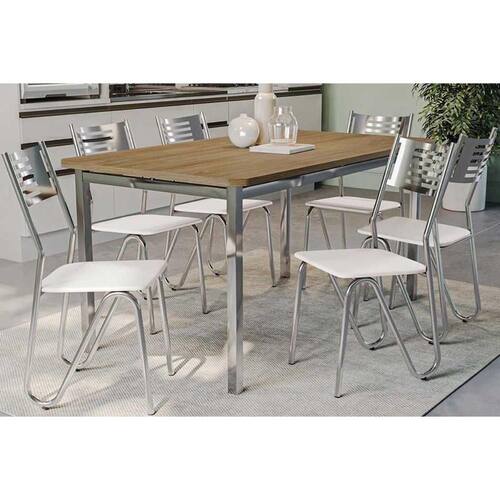Sala de Jantar Completa Reno c/ Tampo de Madeira 160cm e 6 Cadeiras Nápoles Cromada/Branco 106 - Kappesberg Abaixo segue os produtos do KIT: Sala de Jantar Completa Reno c/ Tampo de Madeira 160cm e 6 Cadeiras Nápoles Cromada/Branco 106 - Kappesberg