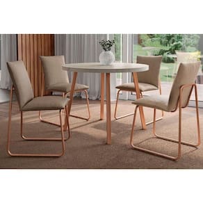 Sala de Jantar Completa Stellar 1599 Aço c/ Tampo Madeirado 100cm e 4 Cadeiras Soft Rose/Petra - Rose/Areia - Carraro Abaixo segue os produtos do KIT: Sala de Jantar Completa Stellar 1599 Aço c/ Tampo Madeirado 100cm e 4 Cadeiras Soft Rose/Petra - Rose/Areia - Carraro Mesa de Sala Jantar Stellar 1599 Aço c/ Tampo Madeirado Redondo 100cm Rose/Petra - Carraro