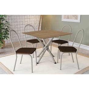 Sala de Jantar Completa Volga c/ Tampo de Madeira 90cm e 4 Cadeiras Noruega Niquel/Nogueira - Marrom - Kappesberg