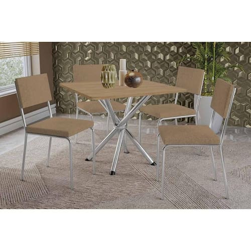 Sala de Jantar Completa Volga c/ Tampo de Madeira 90cm e 4 Cadeiras Zaria Cromada/Nogueira - Suede Bege - Kappesberg Abaixo segue os produtos do KIT: Sala de Jantar Completa Volga c/ Tampo de Madeira 90cm e 4 Cadeiras Zaria Cromada/Nogueira - Suede Bege - Kappesberg