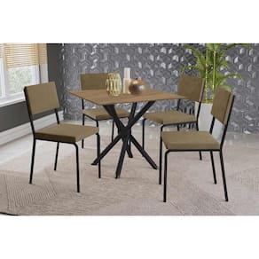 Sala de Jantar Completa Volga c/ Tampo de Madeira 90cm e 4 Cadeiras Zaria Preto/Nogueira - Suede Bege - Kappesberg Abaixo segue os produtos do KIT: Sala de Jantar Completa Volga c/ Tampo de Madeira 90cm e 4 Cadeiras Zaria Preto/Nogueira - Suede Bege - Kappesberg