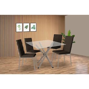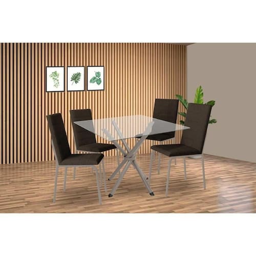 Sala de Jantar Completa Volga c/ Tampo de Vidro 90cm e 4 Cadeiras Amsterdã Niquel - Courano Marrom - Kappesberg Abaixo segue os produtos do KIT: Sala de Jantar Completa Volga c/ Tampo de Vidro 90cm e 4 Cadeiras Amsterdã Niquel - Courano Marrom - Kappesberg Tampo Mesa Sala de Jantar Vidro TAV9061 Vidro Quadrado 90x90cm Incolor - Kappesberg