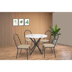 Abaixo segue os produtos do KIT: Sala de Jantar Completa Volga c/ Tampo de Vidro 95cm e 4 Cadeiras Noruega Preto - Bege - Kappesberg