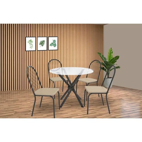 Conjunto: Mesa Sala Jantar Volga c/ Tampo de Vidro 95cm e 4 Cadeiras Noruega Preto - Bege - Kappesberg - Blush