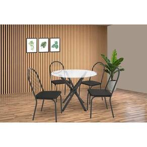 Sala de Jantar Completa Volga c/ Tampo de Vidro 95cm e 4 Cadeiras Noruega Preto - Preto - Kappesberg Abaixo segue os produtos do KIT: Sala de Jantar Completa Volga c/ Tampo de Vidro 95cm e 4 Cadeiras Noruega Preto - Preto - Kappesberg Tampo Mesa Sala de Jantar Vidro TAV9561 Vidro Redondo 95cm Incolor - Kappesberg