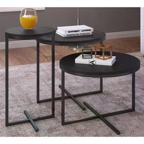 Conjunto Com 03 Mesas Lateral Voip, Linha Complementos Artesano, Com estilo Industrial e design minimalista, é versátil com combinação entre vários módulos. Possui estrutura em tubos de Aço e acabamento com pintura anticorrosiva na cor Preto Fosco. Madeira ecologicamente correta em MDP de 15mm, com acabamento em pintura BP Melamina Fosco. Tampo redondo com capacitade para até 5kg cada uma, possui medidas que permite apoiar revistas, vasos, objetos decorativos e arranjos, ou até mesmo servir como espaço para pequenas refeições e petiscos, garante um visual super sofisticado e moderno para sua sala. Mais produtos da Linha Artesano, você encontra em nosso site, podendo fazer a composição completa para sua casa, são diversos itens com design prático e funcional para tornar a vida mais facil e a casa mais alegre. Este móvel chegará em sua casa separado em 03 volumes.