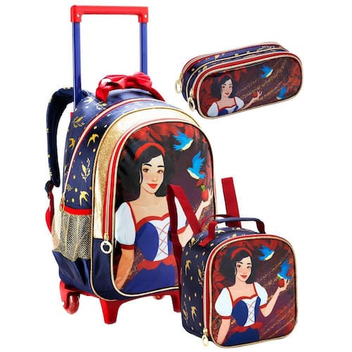 Kit Princesa Mochila Rodas Costas + Lancheira + Estojo Az