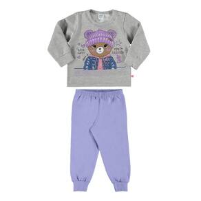 Conjunto Moletom Bebê Marlan Ursinha Mescla/Lilás
