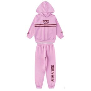 DETALHES DO PRODUTO Conjunto infantil composto por um blusão com capuz e uma calça. 1 Casaco infantil confeccionado em moletom peluciado 100% algodão. Modelagem tradicional com punho e estampa frontal em silk. 1 Calça infantil confeccionada em moletom peluciado 100% algodão. Modelagem tradicional com punho, elástico na cintura e aplique de cadarço. COMPOSIÇÃO Casaco Infantil Moletom Peluciado 100% algodão.