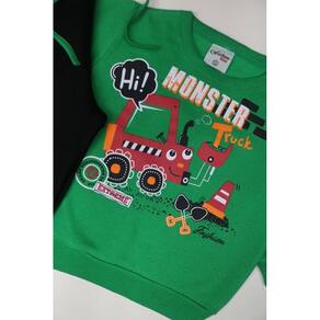 Conjunto Moletom Verde Bebê Menino Monster Truck Inverno Frio - Conjunto Moletom Verde Bebê Menino Monster Truck para o Inverno Frio