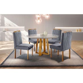 Conjunto Natalle Mesa Redonda 1,2m e 4 Cadeiras Madeira Macica Moveis Mundial Moveis Mix