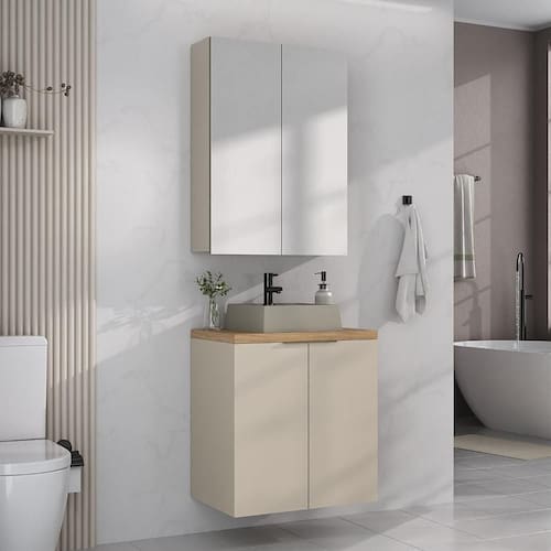 Funcionalidade e estilo em um só conjunto. A espelheira com superfície espelhada amplia o ambiente e reflete mais luz, garantindo uma sensação de amplitude e luminosidade ao banheiro. Já o gabinete oferece praticidade e organização, otimizando o espaço e mantendo tudo sempre à mão. Juntos, eles transformam o ambiente com elegância, leveza visual e praticidade no dia a dia.
