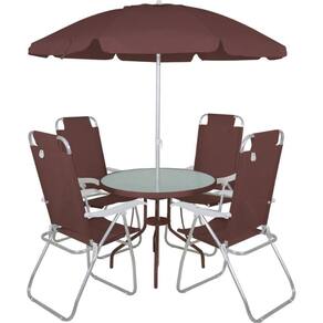 Conteúdo da embalagem: 1 Conjunto Noronha Marrom com Mesa 4 Cadeiras e Guarda Sol