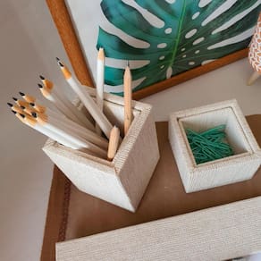 Porta Canetas: Altura: 12 cm (x) Largura: 8 cm (x) Profundidade: 8 cm.