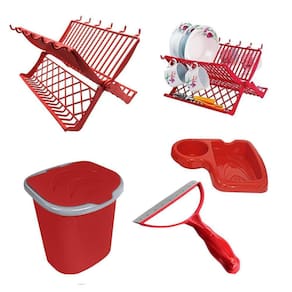 Conjunto organizador pia cozinha lixeira escorredor 4 peças Kit organizador pia cozinha 04 peças - vermelho O kit foi pensado para cozinhas, otimizando a organização no dia-dia. Prático de usar e fácil de limpar. 01 - escorredor pratos, talheres e xicaras01- lixeira 01 - porta detergente e bucha01 - rodinho de pia Marca: Dr.util