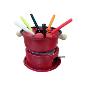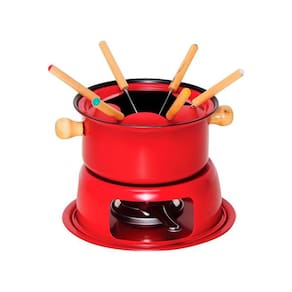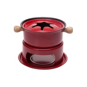 O conjunto de Fondue contém: - 01 Panela Esmaltada 16cm - 01 Queimador - 01 Prato - 01 Base - 01 Separador de garfos - 06 Garfos