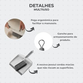 A Pá e Escova de Limpeza Flow removem a sujeira com facilidade, mantendo a casa limpa e organizada. Realize a limpeza dos pisos e finalize com excelência, graças aos dentes presentes na pá, que auxiliam na remoção de resíduos da escova.