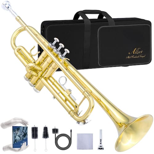 -: Todo desempenho começa com materiais excepcionais. A trompeta de latão ABT-400 apresenta um sino de latão amarelo e um tubo de grafite de latão dourado, meticulosamente projetados para tons ricos e ressonantes. É o equilíbrio perfeito entre durabilidade e elegância, projetado para ajudar você a brilhar no palco ou na prática, seja fazendo parte de uma banda e orquestra ou se apresentando sozinho.