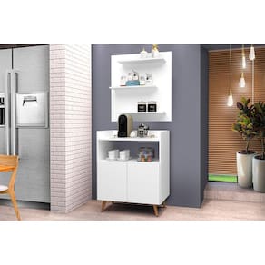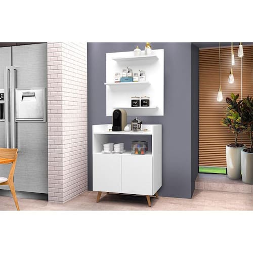 O Conjunto Painel e Aparador Cantinho do Café Suíça é a solução ideal para criar um ambiente charmoso e funcional para armazenar e servir bebidas, além de decorar com bom gosto. Com design retrô, pés palito e linhas elegantes, ele se adapta facilmente a diferentes estilos de decoração, valorizando o ambiente. O painel conta com prateleiras superiores que funcionam como suporte para xícaras, potes ou pequenos objetos decorativos. Já o aparador oferece tampo amplo, nichos organizadores e espaço para cafeteiras, garrafas, bandejas ou utensílios. Seja na sala, cozinha ou área gourmet, este conjunto é perfeito para criar um cantinho especial para receber convidados ou aproveitar momentos de pausa com estilo. Características Tipo: Conjunto Painel e Aparador Modelo: Suíça Cantinho do Café Cor: Branco Painel com prateleiras decorativas Aparador com tampo e nicho aberto Pés palito Design retrô com visual elegante