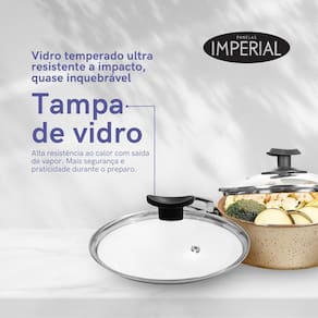 Composição do conjunto: a numeração é referente ao tamanho da boca das panelas, confira as medidas em litros nas fotos do anuncio 1 panela 14cm 1 panela 16cm 1 panela 18cm 1 panela 20cm 1 caçarola 16cm 1 caçarola 20cm 1 fervedor 14cm 1 frigideira 14cm 1 frigideira 16cm 1 frigideira 18cm 1 forma redonda 22cm 1 forma de pudim e bolo 20cm 1 forma retangular As formas podem variar de acordo com a disponibilidade do Leve a sua cozinha a um novo nível de excelência culinária com o conjunto de panelas imperial teflon antiaderente com tampa de vidro. Composto por um conjunto abrangente de panelas de alta qualidade, este conjunto irá elevar as suas habilidades culinárias e facilitar a sua rotina na cozinha. Cada peça deste conjunto foi cuidadosamente projetada para fornecer resultados excepcionais e durabilidade em longo prazo. O revestimento antiaderente em teflon garante que os alimentos não grudem, permitindo que você cozinhe com facilidade e evite a necessidade de usar grandes quantidades de óleo ou gordura. Além disso, nossas panelas possuem tampa de vidro, permitindo que você acompanhe o processo de cozimento sem perder o calor ou o vapor essencial para a preparação dos alimentos. São tampas de vidro temperadas, inquebráveis, visando sua segurança e de sua família. A qualidade e a segurança são garantidas com o selo de qualidade inmetro, assegurando que este conjunto de panelas atenda aos mais altos padrões de fabricação e segurança. O conjunto inclui uma variedade de tamanhos de panelas e frigideiras, desde panelas menores de 16 cm até formas maiores de 30 cm. Com essa diversidade, você terá o utensílio certo para cada tipo de preparação culinária. Não apenas adequado para o seu uso pessoal, este conjunto de panelas também é perfeito para presentear alguém especial. Seja para um cozinheiro iniciante ou um chef experiente, este conjunto de panelas é um presente prático e sofisticado que certamente será apreciado. Traga eficiência e estilo para a sua cozinha com o conjunto de panelas teflon antiaderente com tampa de vidro. Prepare refeições incríveis, economize tempo e desfrute de uma cozinha mais prática e moderna. Invista na qualidade e nos desempenhos excepcionais deste conjunto de panelas, e ele se tornará um item essencial para a sua rotina culinária. Marca: Não Informado