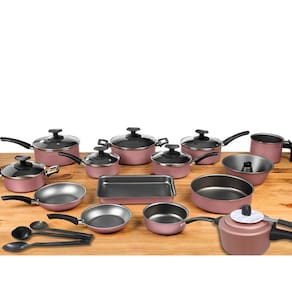 Composição do conjunto: a numeração é referente ao tamanho da boca das panelas, confira as medidas em litros nas fotos do anuncio 1 panela 14cm 1 panela 16cm 1 panela 18cm 1 panela 20cm 1 caçarola 16cm 1 caçarola 20cm 1 fervedor 14cm 1 frigideira 16cm 1 frigideira 18cm 1 frigideira 20cm 1 forma redonda 25cm 1 forma de pudim e bolo 20cm 1 forma retangular 30cm. 1 Panela 2 Litros 3 Talheres de Nylon As formas podem variar de acordo com a disponibilidade do Leve a sua cozinha a um novo nível de excelência culinária com o Conjunto de Panelas Imperial Teflon Antiaderente com Tampa de Vidro. Composto por um conjunto abrangente de panelas de alta qualidade, este conjunto irá elevar as suas habilidades culinárias e facilitar a sua rotina na cozinha. Cada peça deste conjunto foi cuidadosamente projetada para fornecer resultados excepcionais e durabilidade em longo prazo. O revestimento antiaderente em teflon garante que os alimentos não grudem, permitindo que você cozinhe com facilidade e evite a necessidade de usar grandes quantidades de óleo ou gordura. Além disso, nossas panelas possuem tampa de vidro, permitindo que você acompanhe o processo de cozimento sem perder o calor ou o vapor essencial para a preparação dos alimentos. São tampas de vidro temperadas, inquebráveis, visando sua segurança e de sua família. A qualidade e a segurança são garantidas com o selo de qualidade INMETRO, assegurando que este conjunto de panelas atenda aos mais altos padrões de fabricação e segurança. O conjunto inclui uma variedade de tamanhos de panelas e frigideiras, desde panelas menores de 16 cm até formas maiores de 30 cm. Com essa diversidade, você terá o utensílio certo para cada tipo de preparação culinária. Não apenas adequado para o seu uso pessoal, este conjunto de panelas também é perfeito para presentear alguém especial. Seja para um cozinheiro iniciante ou um chef experiente, este conjunto de panelas é um presente prático e sofisticado que certamente será apreciado. Traga eficiência e estilo para a sua cozinha com o Conjunto de Panelas Teflon Antiaderente com Tampa de Vidro. Prepare refeições incríveis, economize tempo e desfrute de uma cozinha mais prática e moderna. Invista na qualidade e nos desempenhos excepcionais deste conjunto de panelas, e ele se tornará um item essencial para a sua rotina culinária. Marca: Não Informado Ean: 7908540302291