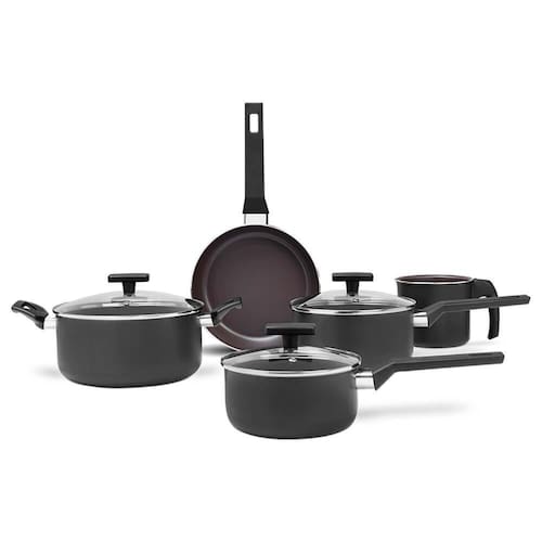 As panelas Preserve Brinox são produzidas com energia 100% renovável, apresentam estrutura em alumínio que cozinha mais rápido e por igual, reduzindo o consumo de gás e energia pois a temperatura baixa ou moderada já é suficiente para um uso perfeito das panelas por se aquecerem rápidas e gradualmente. As tampas são de vidro temperado, com saída para vapor e seus cabos e alças são de baquelite que não esquentam. O conjunto de panelas 5 peças da linha Preserve possui antiaderente mineral resist que possui partículas de cerâmica, com resistência extra para o uso em altas temperaturas e 6 camadas para maior eficácia do antiaderente, não gruda, é fácil de limpar e com Classificação A de antiaderência no Inmetro. nessa versão disponível na cor cinza, já seu revestimento cerâmico interno é preto.