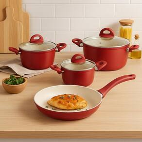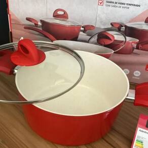 Seu design moderno na cor vermelha traz elegância ao ambiente, enquanto as tampas de vidro temperado com saída de vapor e os cabos e alças com toque soft touch proporcionam conforto e segurança no manuseio.