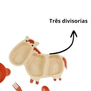 Colorido e divertido, esse kit irá alegrar o momento das refeições. Ele vem com desenhos de animais super legais e atrativos como elefante, hipopotamo e cavalo. o cavalo vem com uma divisoria a mais.