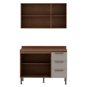 Uma grande vantagem é que os módulos são separados, permitindo realizar a montagem conforme for melhor para o seu ambiente. Além disso, acompanha pés reguláveis em PVC.