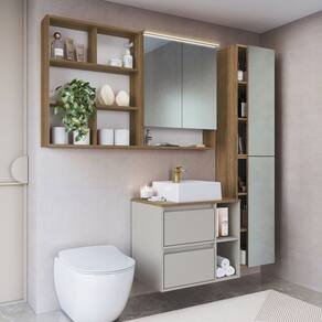 O conjunto para banheiro CB.BN8005 forma um ambiente completo para seu banheiro. Este conjunto conta com balcão com cuba, espelheira com 2 espelhos e luzes led, 1 nicho organizador e mais 2 armários organizadores com espelhos. O conjunto possui design moderno e cria um ambiente prático e organizado ao seu banheiro. Acabamento da Cuba: Liso Acabamento da Gaveta: Finish Foil Acabamento da Porta: Finish Foil Acabamento da Prateleira: Finish Foil Acompanha Cuba: Sim Acompanha Gaveteiro: Não Acompanha Lâmpada: 01 Acompanha Manual de Instalação: Sim Acompanha Parafusos Para Fixação Na Parede: Sim Acompanha Tampo: Sim Acompanha Válvula: Não Altura do Espelho: 58,7 cm Ambiente Principal: Banheiro codigo_ean: 7900288261854 Complexidade da Montagem: Média: pode ser montado por mais de uma pessoa e/ou necessite de maior conhecimento para montagem Cor: Mel/Arenas Cor da Cuba: Branco Cor da Gaveta: Bege Cor da Porta: Bege Cor do Produto: Mel/Arenas Cor Flex: Não Cor Interna: Mel/Arenas Escala de Brilho: Fosco Escala de Brilho da Gaveta: Fosco Escala de Brilho da Porta: Fosco Escala de Brilho da Prateleira: Fosco Espessura do Espelho: 3 mm Formato da Cuba: Retangular Formato do Espelho: Retangular Formato Espelheira: Retangular Furação para Cuba e Torneira: Não Gaveta com Chave: Não Itens Inclusos: 1 Conjunto para Banheiro, 1 Cuba, Kit Ferragens e Manual de Montagem Largura do Espelho: 28 cm Manual de Montagem e Instalação: https://product-hub-prd.madeiramadeira.com.br/324850437/documents/8ff7bcfa-635f-4bd9-bc8d-cc11a9df8c143270244522517601979961718.pdf Marca: Prodecor Material da Cuba: Mármore Sintético Material da Gaveta: MDP Material da Porta: MDP Material da Prateleira: MDP Material do Tampo: MDP Material Principal: MDP Medida da Cuba (C x L x P): 9,8x34x33,5 Medida da Espelheira (A x L x P): 75x60x19 Medida do Gabinete (A x L x P): 51,5x60x40,5 Montagem Flex: Não Necessita Montagem: Sim Origem do Produto: Nacional Peso: 57,5 kg Peso Máximo por Gaveta: 5 kg Peso Máximo por Prateleira: 3 kg Possui Espelheira: Sim Possui Gabinete: Sim Possui iluminação: Sim Possui Nichos: Sim Possui Pés: Suspenso Possui Recorte No Tampo Para Cuba: Não Possui Recorte No Tampo Para Misturador: Não Possui Rodízio: Não Possui Sifão: Não Possui Tampo: Sim Possui Tampo de Vidro: Não Produto Montado: Não Quantidade de Espelhos: 04 Espelhos com Tamanhos Diferentes Recomendações de Uso, Manutenção e Limpeza: Para a limpeza do móvel utilizar pano levemente umedecido Sistema de Montagem: Parafusos, cavilhas e minifix Suporta Até (kg): 60 kg Suporte para Toalheiro: Não Tamanho do Espelho (A x L): 58,7x28 Tamanho do Gabinete: Médio: de 60cm a 80cm de largura Tamanho do Produto: 160x156x40,5 Tipo de Corrediça da Gaveta: Metálica Telescópica Tipo de Cuba: Sobrepor Tipo de Dobradiça/Corrediça da Porta: Metálica Tipo de Fixação do Espelho: Silicone Tipo de Gabinete: Gabinete Suspenso Tipo de Gaveta: Externa Tipo de Porta: Misto (Bater e Basculante) Tipo de Puxador da Gaveta: Não Possui Tipo de Puxador da Porta: Não Contém Marca: Não Informado