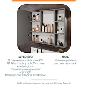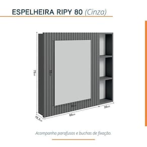 1x Espelheira para Banheiro Ripy 80cm Cinza Largura: 80 cm Altura: 70 cm Peso: 14 kg Profundidade: 10,3 cm Necessita Montagem: Não