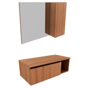 Conjunto Para Banheiro. Com design prático e funcional, estas peças ao ambiente toques de modernidade e elegância. Possuem estruta em MDP de 15mm, e acabamento em pintura UV/BP. Composto por espelheira com 01 porta na lateral do espelho com dobradiças metálicas e 3 nichos internos, espelho ja fixado no painel, gabinete com 01 porta basculante com dobradiças metálicas e articulador com trava, 01 nicho, 02 gavetas com corrediças metálicas, ideal para cuba de apoio (cuba não inclusa). Este conjunto é uma ótima escolha para manter seus produtos de higiene e beleza sempre organizados. Estes produtos chegarão na sua casa separados em 02 volumes.