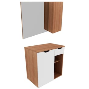 Conjunto Para Banheiro 02 Peças. Com design prático e funcional, estas peças ao ambiente toques de modernidade e elegância. Possuem estruta em MDP de 15mm, e acabamento em pintura UV/BP. Composto por espelheira com 01 porta na lateral do espelho com dobradiças metálicas e 3 nichos internos, espelho ja fixado no painel, o gabinete conta 01 porta com dobradiças metálicas, 02 nichos e 01 gaveta com corrediças metálicas para tornar sua rotina mais prática, ideal para cuba de apoio (cuba não inclusa). Este conjunto é uma ótima escolha para manter seus produtos de higiene e beleza sempre organizados. Estes produtos chegarão na sua casa separados em 02 volumes.