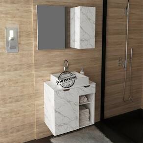 Conjunto Para Banheiro 02 Peças. Com design prático e funcional, estas peças ao ambiente toques de modernidade e elegância. Possuem estruta em MDP de 15mm, e acabamento em pintura UV/BP. Composto por espelheira com 01 porta na lateral do espelho com dobradiças metálicas e 3 nichos internos, espelho ja fixado no painel, o gabinete conta 01 porta com dobradiças metálicas, 02 nichos e 01 gaveta com corrediças metálicas para tornar sua rotina mais prática, ideal para cuba de apoio (cuba não inclusa). Este conjunto é uma ótima escolha para manter seus produtos de higiene e beleza sempre organizados. Estes produtos chegarão na sua casa separados em 02 volumes.