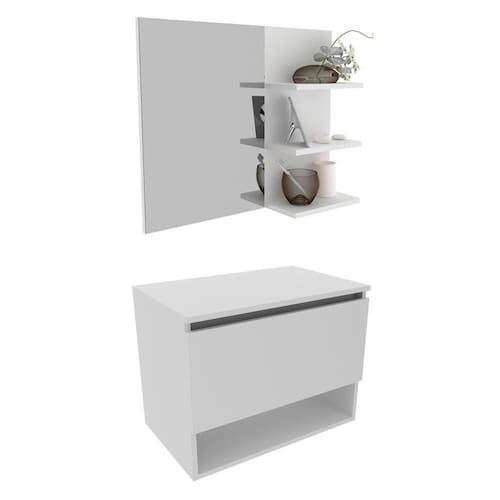 Conjunto Para Banheiro. Com design prático e funcional, estas peças ao ambiente toques de modernidade e elegância. Possuem estruta em MDP de 15mm, e acabamento em pintura UV/BP. Gabinete possui 01 porta basculante com dobradiças metálicas e articulador com trava, 01 nicho, espelheira com 03 prateleiras para tornar sua rotina mais pratica, espelho ja fixado no painel, gabinete suspenso ideal para cuba de apoio (cuba não inclusa). Este conjunto é uma ótima escolha para manter seus produtos de higiene e beleza sempre organizados. Estes produtos chegarão na sua casa separados em 02 volumes.