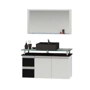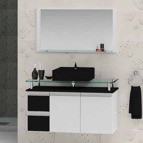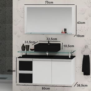 Conjunto para Banheiro Gabinete com Cuba e Espelheira 80cm Diamante Preto - Branco