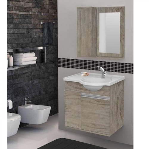 Facilidade e praticidade na limpeza com pintura fosca nas portas, gavetas e estrutura.Suavidade na abertura e fechamento das gavetas, com o uso de corrediças telescópicas.Acabamento e beleza aprimorados, com espelho em cristal e suporte porta escova. Resistência garantida por dobradiças metálicas niqueladas, com possibilidade de regulagem em três posições. Acompanha kit com ferragens para fixação e uma prateleira interna.Acompanha tampo branco semi-encaixe em resina sintética com cuba deslocada p/ direita.Garantia contra defeitos de fabricação de 90 dias.Matérias primas aplicadas: MDF + MDP + HDF. Acabamento em pintura Branco Fosco, Preto/Branco Fosco, Avelã/Branco fosco, Madeirado/Branco Fosco, Madeirado, Branco fosco/Madeirado, Preto/Madeirado e Avelã/Madeirado. Acabamento: Pintura UV Acabamento da Cuba: Liso Acabamento da Gaveta: Pintura UV Acabamento da Porta: Pintura UV Acabamento da Prateleira: Pintura UV Acompanha Cuba: Sim Acompanha Tampo: Não Altura: 64 cm calculo: unidade Cr: Madeirado Cr da Cuba: Branco Cr do Produto: Madeirado Cr Interna: Branco Escala de Brilho: Fosco Escala de Brilho da Gaveta: Fosco Escala de Brilho da Porta: Fosco Escala de Brilho da Prateleira: Brilhante Espessura do Espelho: 30 mm Estilo: Moderno Formato do Espelho: Retangular Furação para Cuba e Torneira: Sim Gaveta com Chave: Não Itens Inclusos: 01 Armário central, 01 Toucador e 01 tampo Largura: 64 cm Linha ou Coleção: New Aspen Manual de Montagem e Instalação: https://cdn2.madeiramadeira.com.br/atributo/moveis-bonatto/534762-conjunto-new-aspen-64cm-r00-28-10-19.pdf Material da Cuba: Resina Material da Gaveta: MDF Material da Porta: MDF Material da Prateleira: MDP Material Principal: MDF/MDP Medida da Cuba (C x L x P): 64x42 Medida da Espelheira (A x L x P): 59x62x13,5 Medida do Gabinete (A x L x P): 64x64x42 Necessita Montagem: Não Origem do Produto: Nacional Peso: 25,5 kg Peso Máximo por Gaveta: 1,5 kg Peso Máximo por Prateleira: 1,5 kg Possui Espelheira: Sim Possui Espelho: Sim Possui Gabinete: Sim Possui Gavetas: 03 Possui iluminação: Não Possui Pés: Não Possui Portas: 01 Possui Prateleiras: 02 Possui Rodízio: Não Profundidade: 42 cm Recomendações de Uso, Manutenção e Limpeza: Nunca utilizar produtos abrasivos (tais como: solvente, àlcool, limpadores instantâneos e etc. ) nas limpezas dos móveis bonatto. Recomenda-se o uso de flanela macia levemente umedecida e sabão neutro. status-cadastro: Aprovado Suporta Até (kg): 7 kg Tamanho: Tamanho do Espelho (A x L): 50x30 Tipo de Corrediça da Gaveta: Metálica Telescópica Tipo de Dobradiça/Corrediça da Porta: Metálica Tipo de Porta: Bater Tipo de Puxador da Gaveta: Não Contém Tipo de Puxador da Porta: Embutido