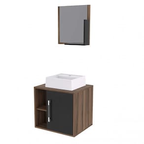 O kit Soft 500 é um produto compacto e econômico, de design simples, projetado para espaços pequenos, perfeito para fazer parte do seu banheiro. Produzido todo em MDP-BP Acetinado 15mm amadeirado, conta com uma cuba de apoio e uma espelheira com prateleira. Acabamento da Cuba: Gel Acabamento da Gaveta: Acabamento da Porta: BP Acetinado Acabamento da Prateleira: BP Acetinado Acabamento dos Pés: Acompanha Cuba: Sim Acompanha Lâmpada: Acompanha Tampo: Sim Altura dos Pés: Ambiente Principal: Complexidade da Montagem: Média: pode ser montado por mais de uma pessoa e/ou necessite de maior conhecimento para montagem Cor: Nogal/Preto Ônix Cor da Cuba: Branco Cor do Produto: Nogal/Preto Ônix Cor Flex: Cor Interna: Escala de Brilho: Fosco Escala de Brilho da Gaveta: Escala de Brilho da Porta: Fosco Escala de Brilho da Prateleira: Fosco Espessura do Espelho: 3 Formato do Espelho: Retangular Furação para Cuba e Torneira: Não Gaveta com Chave: Informações Complementares: Itens Inclusos: 1 Gabinete com Cuba, 1 Espelheira e Manual de Instruções Linha ou Coleção: Soft Manual de Especificação Técnica: Manual de Montagem e Instalação: https://cdn2.madeiramadeira.com.br/atributo/compace/462340-manual-de-montagem-soft-500-siena.pdf Material da Cuba: Mármore Sintético Material da Gaveta: Material da Porta: MDP Material da Prateleira: MDP Material do Puxador da Gaveta: Material do Puxador da Porta: ABS Material do Tampo: MDF/MDP Material dos Pés: Material Principal: MDP Medida da Cuba (C x L x P): 33cm x 30cm x 10cm Medida da Espelheira (A x L x P): 42cm x 40cm x 10cm Medida do Gabinete (A x L x P): 46cm x 50cm x 40cm Montagem Flex: Necessita Montagem: Sim Origem do Produto: Nacional Pés Reguláveis: Peso: 18 Peso Máximo por Gaveta: Peso Máximo por Prateleira: 1 Possui Espelheira: Sim Possui Gabinete: Sim Possui Gavetas: Não Possui iluminação: Não Possui Pés: Suspenso Possui Portas: 01 Possui Rodízio: Não Recomendações de Uso, Manutenção e Limpeza: Para a limpeza, utilize flanela seca ou pano macio levemente umedecido em água. Utilize um pano seco em seguida. Evite contato com produtos químicos (solventes, thinner, acetona, etc) e não utilize nenhum tipo de esponja de aço. Rodízio com Trava: Sapatas Niveladoras: Sistema de Montagem: Parafusos e buchas Suporta Até (kg): Tamanho do Espelho (A x L): 40cm x 35cm Tipo de Corrediça da Gaveta: Tipo de Dobradiça/Corrediça da Porta: Metálica Tipo de Gabinete: Tipo de Madeira Maciça: Tipo de Madeira Maciça da Gaveta: Tipo de Madeira Maciça da Porta: Tipo de Madeira Maciça da Prateleira: Tipo de Madeira Maciça do Puxador da Gaveta: Tipo de Madeira Maciça dos Pés: Tipo de Porta: Bater Tipo de Puxador da Gaveta: Tipo de Puxador da Porta: Externo
