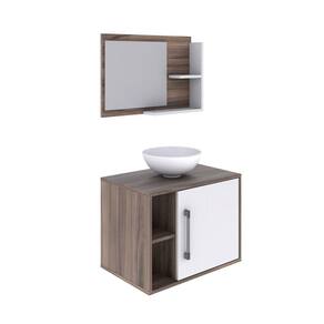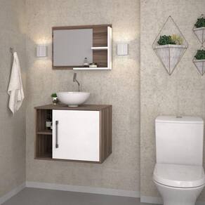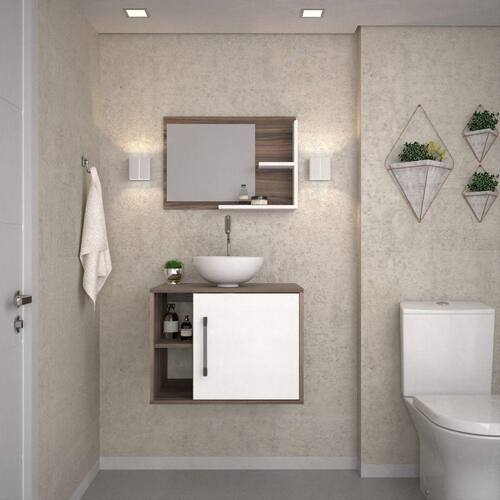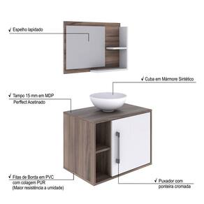 Conjunto para Banheiro Gabinete com Cuba Redonda R30 e Espelheira Laura 600 Yescasa Nogal/Branco Chess - Marrom