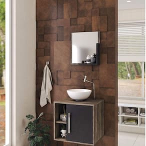 O kit Soft 500 é um produto compacto e econômico, de design simples, projetado para espaços pequenos, perfeito para fazer parte do seu banheiro. Produzido todo em MDP-BP Acetinado 15mm amadeirado, conta com uma cuba de apoio e uma espelheira com prateleira. Acabamento da Cuba: Gel Acabamento da Porta: BP Acetinado Acabamento da Prateleira: BP Acetinado Acompanha Cuba: Sim Acompanha Tampo: Sim codigo_ean: 7893640098628 Complexidade da Montagem: Média: pode ser montado por mais de uma pessoa e/ou necessite de maior conhecimento para montagem Cor: Carvalho Dark C/Preto Ônix Cor da Cuba: Branco Cor Interna: Branco Escala de Brilho: Fosco Escala de Brilho da Porta: Fosco Escala de Brilho da Prateleira: Fosco Espessura do Espelho: 3 mm Formato do Espelho: Retangular Furação para Cuba e Torneira: Não Itens Inclusos: 1 Gabinete com Cuba, 1 Espelheira e Manual de Montagem. Linha ou Coleção: Soft Manual de Montagem e Instalação: https://product-hub-prd.madeiramadeira.com.br/538762/documents/550b3648-90f1-40b1-af27-9ed2f4404ee4nualdemontagemsoft500siena.pdf Material da Cuba: Mármore Sintético Material da Porta: MDP Material da Prateleira: MDP Material do Puxador da Porta: ABS Material do Tampo: MDF/MDP Material Principal: MDP Medida da Cuba (C x L x P): 30,5cm x 30,5cm x 12,5cm Medida da Espelheira (A x L x P): 42cm x 40cm x 10cm Medida do Gabinete (A x L x P): 46cm x 50cm x 40cm Necessita Montagem: Sim Origem do Produto: Nacional Peso: 18 kg Peso Máximo por Prateleira: 1 kg Possui Espelheira: Sim Possui Gabinete: Sim Possui Gavetas: Não Possui iluminação: Não Possui Pés: Suspenso Possui Portas: Sim Possui Rodízio: Não Produto Montado: Sim Recomendações de Uso, Manutenção e Limpeza: Para a limpeza, utilize flanela seca ou pano macio levemente umedecido em água. Utilize um pano seco em seguida. Evite contato com produtos químicos (solventes, thinner, acetona, etc) e não utilize nenhum tipo de esponja de aço. Sistema de Montagem: Parafusos e Buchas. Tamanho do Espelho (A x L): 40cm x 35cm Tipo de Dobradiça/Corrediça da Porta: Metálica Tipo de Porta: Bater Tipo de Puxador da Gaveta: Externo Tipo de Puxador da Porta: Externo