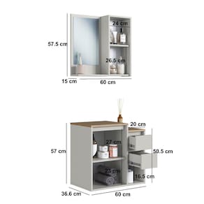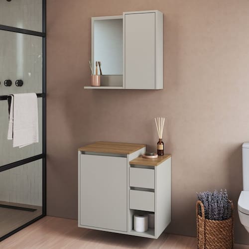 Conheça o conjunto gabinete para banheiro Art In Móveis, desenvolvido para otimizar o espaço e guardar pertences. Aproveite! Este produto foi produzido em excelente material MDP de madeira reflorestada ecologicamente correta e com acabamento Finish Foil Acetinado, que garante maior resistência e qualidade em seu móvel. A essência de criar soluções que trazem mais conforto sua vida. Esse é o grande diferencial dos produtos Art In Móveis. Cada nova ideia é uma mistura de criatividade, funcionalidade e muita dedicação. Não acompanha cuba. Acabamento da Gaveta: Finish Foil Acabamento da Porta: Finish Foil Acabamento da Prateleira: Finish Foil Acompanha Cuba: Não Acompanha Gaveteiro: Não Acompanha Manual de Instalação: Sim Acompanha Parafusos Para Fixação Na Parede: Sim Acompanha Tampo: Sim Altura do Espelho: 45 cm Ambiente Principal: Banheiro codigo_ean: 7900288279200 Complexidade da Montagem: Média: pode ser montado por mais de uma pessoa e/ou necessite de maior conhecimento para montagem Cor: Arenas Cor da Gaveta: Bege Cor da Porta: Bege Cor do Produto: Arenas Cor Flex: Não Cor Interna: Arenas Escala de Brilho: Fosco Escala de Brilho da Gaveta: Fosco Escala de Brilho da Porta: Fosco Escala de Brilho da Prateleira: Fosco Espessura do Espelho: 3 mm Formato do Espelho: Retangular Formato Espelheira: Retangular Furação para Cuba e Torneira: Não Gaveta com Chave: Não Itens Inclusos: 1 Gabinete, 1 Espelheira, Kit Ferragens e Manual de Montagem Largura do Espelho: 28 cm Linha ou Coleção: Bari Manual de Montagem e Instalação: https://product-hub-prd.madeiramadeira.com.br/655948746/documents/f3d034f5-b426-4f18-8f80-631fcded6d0f3298840522517617557761075.pdf Marca: Art in Móveis Material da Gaveta: MDP Material da Porta: MDP Material da Prateleira: MDP Material do Tampo: MDP Material Principal: MDP Medida da Espelheira (A x L x P): 57,5x60x15 Medida do Gabinete (A x L x P): 57X60X36,6 Montagem Flex: Não Necessita Montagem: Sim Origem do Produto: Nacional Peso: 23,8 kg Peso Máximo por Gaveta: 5 kg Peso Máximo por Prateleira: 5 kg Possui Espelheira: Sim Possui Gabinete: Sim Possui iluminação: Não Possui Nichos: Sim Possui Pés: Suspenso Possui Recorte No Tampo Para Cuba: Não Possui Recorte No Tampo Para Misturador: Não Possui Rodízio: Não Possui Sifão: Não Possui Tampo: Sim Possui Tampo de Vidro: Não Produto Montado: Não Quantidade de Espelhos: 01 Recomendações de Uso, Manutenção e Limpeza: Para a limpeza do móvel utilizar pano levemente umedecido Sistema de Montagem: Parafusos, cavilhas e minifix Suporta Até (kg): 30 kg Suporte para Toalheiro: Não Tamanho do Espelho (A x L): 45x28 Tamanho do Gabinete: Médio: de 60cm a 80cm de largura Tamanho do Produto: 114,5x60x36,6 Tipo de Corrediça da Gaveta: Metálica Telescópica Tipo de Dobradiça/Corrediça da Porta: Metálica Tipo de Fixação do Espelho: Silicone Tipo de Gabinete: Gabinete Suspenso Tipo de Gaveta: Externa Tipo de Porta: Bater Tipo de Puxador da Gaveta: Não Possui Tipo de Puxador da Porta: Não Contém