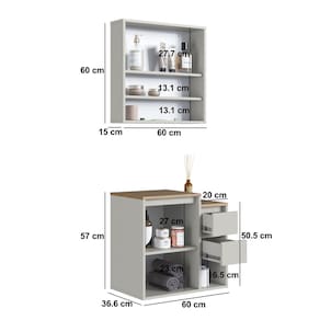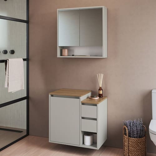 Conheça o conjunto gabinete para banheiro Art In Móveis, desenvolvido para otimizar o espaço e guardar pertences. Aproveite! Este produto foi produzido em excelente material MDP de madeira reflorestada ecologicamente correta e com acabamento Finish Foil Acetinado, que garante maior resistência e qualidade em seu móvel. A essência de criar soluções que trazem mais conforto sua vida. Esse é o grande diferencial dos produtos Art In Móveis. Cada nova ideia é uma mistura de criatividade, funcionalidade e muita dedicação. Não acompanha cuba. Acabamento da Gaveta: Finish Foil Acabamento da Porta: Finish Foil Acabamento da Prateleira: Finish Foil Acompanha Cuba: Não Acompanha Gaveteiro: Não Acompanha Manual de Instalação: Sim Acompanha Parafusos Para Fixação Na Parede: Sim Acompanha Tampo: Sim Altura do Espelho: 45 cm Ambiente Principal: Banheiro codigo_ean: 7900288279262 Complexidade da Montagem: Média: pode ser montado por mais de uma pessoa e/ou necessite de maior conhecimento para montagem Cor: Arenas Cor da Gaveta: Bege Cor da Porta: Bege Cor do Produto: Arenas Cor Flex: Não Cor Interna: Arenas Escala de Brilho: Fosco Escala de Brilho da Gaveta: Fosco Escala de Brilho da Porta: Fosco Escala de Brilho da Prateleira: Fosco Espessura do Espelho: 3 mm Formato do Espelho: Retangular Formato Espelheira: Retangular Furação para Cuba e Torneira: Não Gaveta com Chave: Não Itens Inclusos: 1 Gabinete, 1 Espelheira, Kit Ferragens e Manual de Montagem Largura do Espelho: 28 cm Linha ou Coleção: Bologna Manual de Montagem e Instalação: https://product-hub-prd.madeiramadeira.com.br/499244699/documents/61d425bb-d222-4492-807e-a1c4dcfbf17f3298882522517617560204024.pdf Marca: Art in Móveis Material da Gaveta: MDP Material da Porta: MDP Material da Prateleira: MDP Material do Tampo: MDP Material Principal: MDP Medida da Espelheira (A x L x P): 60x60x15 Medida do Gabinete (A x L x P): 57X60X36,6 Montagem Flex: Não Necessita Montagem: Sim Origem do Produto: Nacional Peso: 26,9 kg Peso Máximo por Gaveta: 5 kg Peso Máximo por Prateleira: 5 kg Possui Espelheira: Sim Possui Gabinete: Sim Possui iluminação: Não Possui Nichos: Sim Possui Pés: Suspenso Possui Recorte No Tampo Para Cuba: Não Possui Recorte No Tampo Para Misturador: Não Possui Rodízio: Não Possui Sifão: Não Possui Tampo: Sim Possui Tampo de Vidro: Não Produto Montado: Não Quantidade de Espelhos: 02 Espelhos com Tamanhos Iguais Recomendações de Uso, Manutenção e Limpeza: Para a limpeza do móvel utilizar pano levemente umedecido Sistema de Montagem: Parafusos, cavilhas e minifix Suporta Até (kg): 30 kg Suporte para Toalheiro: Não Tamanho do Espelho (A x L): 45x28 Tamanho do Gabinete: Médio: de 60cm a 80cm de largura Tamanho do Produto: 117x60x36,6 Tipo de Corrediça da Gaveta: Metálica Telescópica Tipo de Dobradiça/Corrediça da Porta: Metálica Tipo de Fixação do Espelho: Silicone Tipo de Gabinete: Gabinete Suspenso Tipo de Gaveta: Externa Tipo de Porta: Bater Tipo de Puxador da Gaveta: Não Possui Tipo de Puxador da Porta: Não Contém