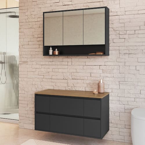 Conheça o conjunto gabinete para banheiro Art In Móveis, desenvolvido para otimizar o espaço e guardar pertences. Aproveite! Este produto foi produzido em excelente material MDP de madeira reflorestada ecologicamente correta e com acabamento Finish Foil Acetinado, que garante maior resistência e qualidade em seu móvel. A essência de criar soluções que trazem mais conforto sua vida. Esse é o grande diferencial dos produtos Art In Móveis. Cada nova ideia é uma mistura de criatividade, funcionalidade e muita dedicação. Não acompanha cuba. Acabamento da Gaveta: Finish Foil Acabamento da Porta: Finish Foil Acabamento da Prateleira: Finish Foil Acompanha Cuba: Não Acompanha Gaveteiro: Não Acompanha Manual de Instalação: Sim Acompanha Parafusos Para Fixação Na Parede: Sim Acompanha Tampo: Sim Altura do Espelho: 45 cm Ambiente Principal: Banheiro codigo_ean: 7900288279743 Complexidade da Montagem: Média: pode ser montado por mais de uma pessoa e/ou necessite de maior conhecimento para montagem Cor: Grafite Cor da Gaveta: Preto Cor da Porta: Preto Cor do Produto: Grafite Cor Flex: Não Cor Interna: Grafite Escala de Brilho: Fosco Escala de Brilho da Gaveta: Fosco Escala de Brilho da Porta: Fosco Escala de Brilho da Prateleira: Fosco Espessura do Espelho: 3 mm Formato do Espelho: Retangular Formato Espelheira: Retangular Furação para Cuba e Torneira: Não Gaveta com Chave: Não Itens Inclusos: 1 Conjunto de Banheiro, Kit Ferragem e Manual de Montagem Largura do Espelho: 28 cm Linha ou Coleção: Banheiro Manual de Montagem e Instalação: https://product-hub-prd.madeiramadeira.com.br/362721285/documents/c439db14-a992-4c1a-8cd7-d57707cdcafa3300767522517617741866987.pdf Marca: Art in Móveis Material da Gaveta: MDP Material da Porta: MDP Material da Prateleira: MDP Material do Tampo: MDP Material Principal: MDP Medida da Espelheira (A x L x P): 60x88,4x15 Medida do Gabinete (A x L x P): 48X88,4X36,6 Montagem Flex: Não Necessita Montagem: Sim Origem do Produto: Nacional Peso: 40,1 kg Peso Máximo por Gaveta: 5 kg Peso Máximo por Prateleira: 5 kg Possui Espelheira: Sim Possui Gabinete: Sim Possui iluminação: Não Possui Nichos: Sim Possui Pés: Suspenso Possui Recorte No Tampo Para Cuba: Não Possui Recorte No Tampo Para Misturador: Não Possui Rodízio: Não Possui Sifão: Não Possui Tampo: Sim Possui Tampo de Vidro: Não Produto Montado: Não Quantidade de Espelhos: 03 Espelhos com Tamanhos Iguais Recomendações de Uso, Manutenção e Limpeza: Para a limpeza do móvel utilizar pano levemente umedecido Sistema de Montagem: Parafusos, cavilhas e minifix Suporta Até (kg): 30 kg Suporte para Toalheiro: Não Tamanho do Espelho (A x L): 45x28 Tamanho do Gabinete: Grande: Acima de 80cm de largura Tamanho do Produto: 108x88,4x36,6 Tipo de Corrediça da Gaveta: Metálica Telescópica Tipo de Dobradiça/Corrediça da Porta: Metálica Tipo de Fixação do Espelho: Silicone Tipo de Gabinete: Gabinete Suspenso Tipo de Gaveta: Externa Tipo de Porta: Misto (Bater e Basculante) Tipo de Puxador da Gaveta: Não Possui Tipo de Puxador da Porta: Não Contém