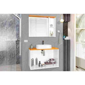 KIT BANHEIRO COMPLETO 60CM - GABINETE + CUBA + ESPELHEIRA