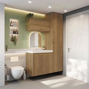 Praticidade e elegância para todos os espaços, aliado a qualidade do 100% MDF com a Celeste da Kappesberg. Deixando seu ambiente organizado e lindo, o combo CB1282 se encaixa perfeitamente com todos os espaços, sendo ideal para o dia a dia. Com três peças, ele é compacto e garante as divisões perfeitas para organizar toalhas, cestos e demais itens, mantendo tudo no lugar. E com até sete camadas de pintura, sua cor nogueira, com acabamento touch, é perfeita para todos os ambientes, garantindo a sensação de conforto e aconchego, além de praticidade na limpeza, e remetendo aos tons da naturaza, deixará seu banheiro completo. As portas contam com amortecimento, garantindo um fechamento suave, sem ruído e mais durabilidade, e para completar a beleza dos módulos, os puxadores, metálicos na cor dourada, contam com modelos diferentes no balcão e aéreos, transformando seu projeto com estilo. Aposte na Celeste e monte seu banheiro com toda a beleza e praticidade que a Kappesberg oferece.