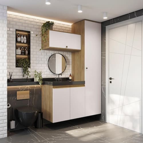 Praticidade e elegância para todos os espaços, aliado a qualidade do 100% MDF com a Celeste da Kappesberg. Deixando seu ambiente organizado e lindo, o combo CB1282 se encaixa perfeitamente com todos os espaços, sendo ideal para o dia a dia. Com três peças, ele é compacto e garante as divisões perfeitas para organizar toalhas, cestos e demais itens, mantendo tudo no lugar. E com até sete camadas de pintura, a caixaria é na cor nogueira, com acabamento touch, enquanto as frentes são em branco brilho. Uma combinação sofisticada e única, que trará conforto e elegância para todos os ambientes, deixando seu banheiro completo. As portas contam com amortecimento, garantindo um fechamento suave, sem ruído e mais durabilidade, e para completar a beleza dos módulos, os puxadores, metálicos na cor dourada, contam com modelos diferentes no balcão e aéreos, transformando seu projeto com estilo. Aposte na Celeste e monte seu banheiro com toda a beleza e praticidade que a Kappesberg oferece.