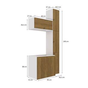 Acabamento: Pintura Brilho / Pintura Touch | Cor: Branco/Nogueira | Dobradiça: Com Amortecimento / Sem Amortecimento | Garantia: 3 meses para defeito de fabricação | Matéria-prima: MDF | Peso suportado por cada prateleira: 7 kg | Puxadores: Alumínio / Metálicos | Quantidade de portas: 1 / 2 | Quantidade de prateleiras: 1 | Sistema de montagem: Parafuso Philips | Tipo de porta: Bater
